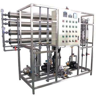 Esta máquina de agua por ósmosis inversa está diseñada para el tratamiento de agua doméstica y subterránea. Elimina eficazmente iones, compuestos orgánicos de bajo peso molecular, bacterias, virus y pirógenos. El sistema procesa el agua cruda a través de filtración con arena de cuarzo, filtración con carbón activado, filtración de ablandamiento y filtración de precisión antes de pasar por la bomba de presión con una abertura de membrana de 1/10000 micras.